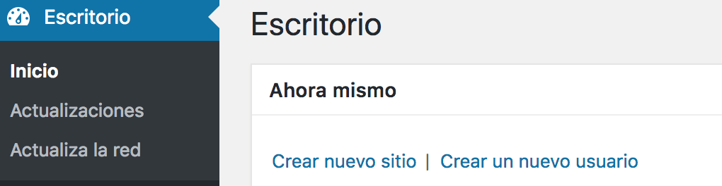 Cuando entres en el administrador de WordPress, una vez creado el multisite, lo verás algo cambiado.