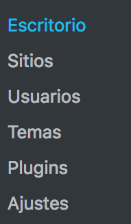 Cuando entres en el administrador de WordPress, una vez creado el multisite, verás que el menú superior ha cambiado.